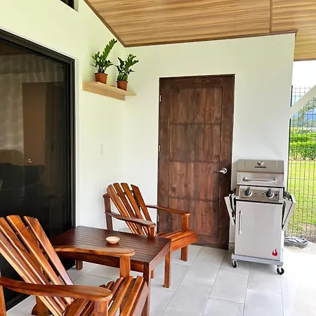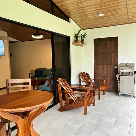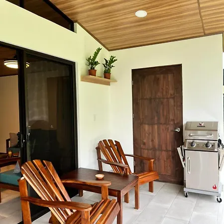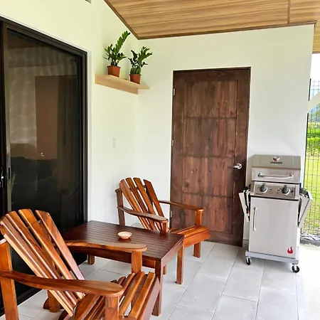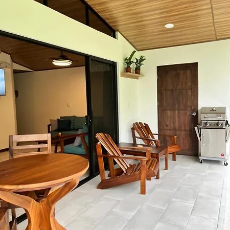 The La Fortuna property includes a fully furnished kitchen, as well as an outdoor dining area for self-catering.